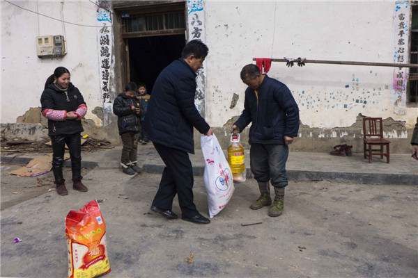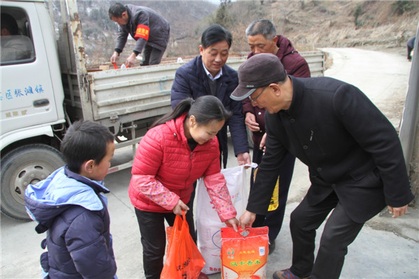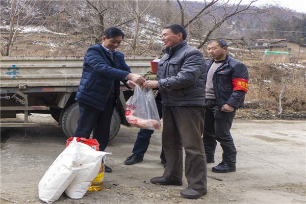 2018年2月7日,安康寶業(yè)公司扶貧工作組響應(yīng)市工商聯(lián)“萬企幫萬村”的號(hào)召,與漢濱區(qū)中原鎮(zhèn)麻廟村結(jié)為幫扶對(duì)象,在春節(jié)來臨之際他們冒著嚴(yán)寒和冰雪路滑,給該村47戶貧困戶送去了米面糧油和大肉。